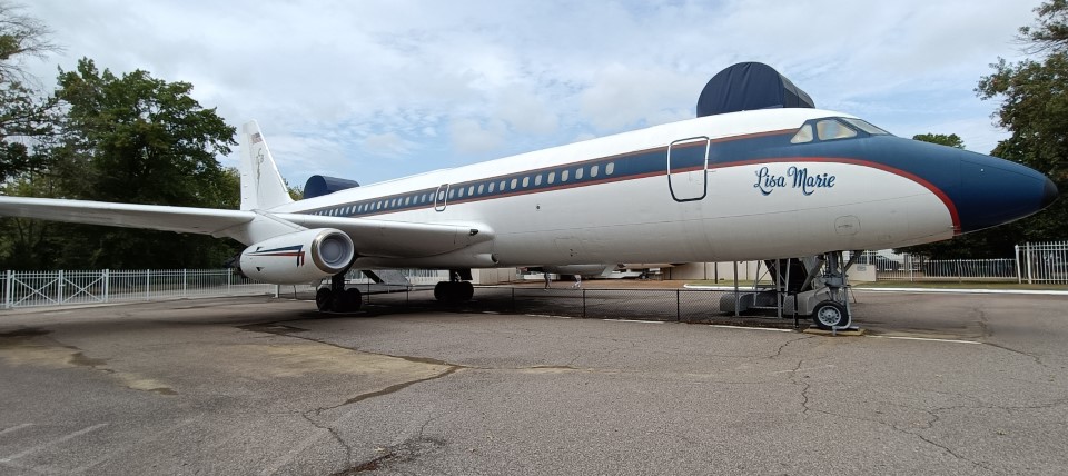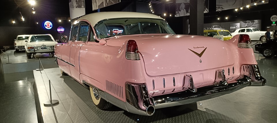 After Gracelands its back across the road to tick off the other Elvis Experiences. There’s the huge showroom with Elvis’s collection of Cadillacs, Lincolns, Stutzs, Rolls…….; there’s the almost as large showroom of his very expensive collection of jumpsuits, black leather suits, gold lamé suits,……; there’s ‘Lisa Marie’ – the big Elvis aeroplane that we can take a walk through, and his little aeroplane that we can peep inside; there’s the room dedicated to Elvis’s influence on the music scene, and the world in general; there’s the history of Elvis in the army and reviews of his film career. And of course the Elvis Store where we can buy anything and everything from Elvis socks to an Elvis leg-swinging pendulum clock.