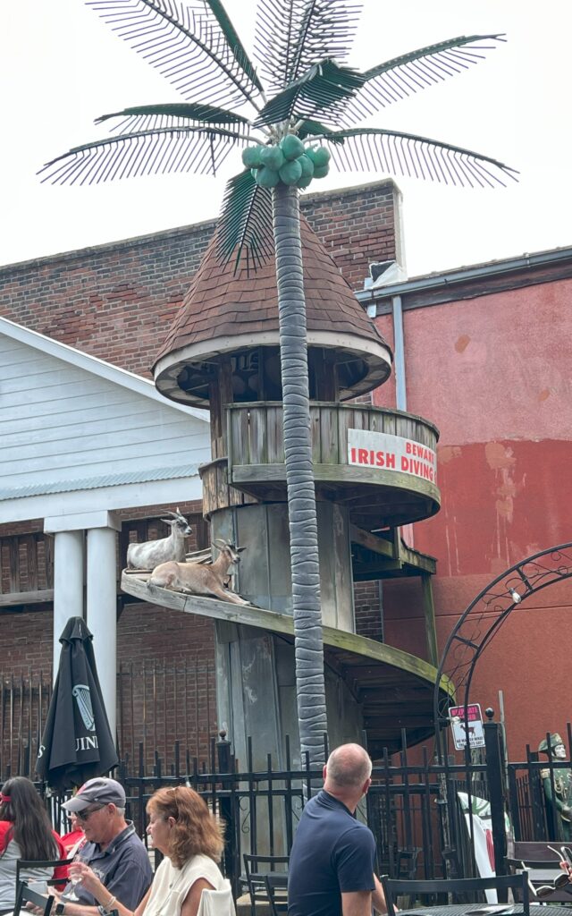On the way back I’m wandering down Beale Street when I hear some good music coming from a cosy pub courtyard. Seems like a good opportunity to relax, have a beer and enjoy the sunshine. I text the others suggesting they join me. There’s a strange miniature helter-skelter structure in the yard with a couple of live goats half-way up. Seems a bit weird. Then I notice it’s an Irish bar – not sure if that’s significant. Anyway, the music is good, the beer is good, and when they finally join me, the company is good. And one of the goats has disappeared by this time.